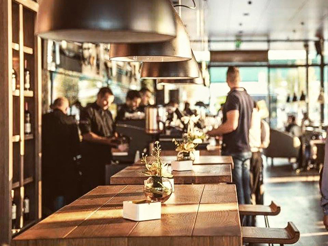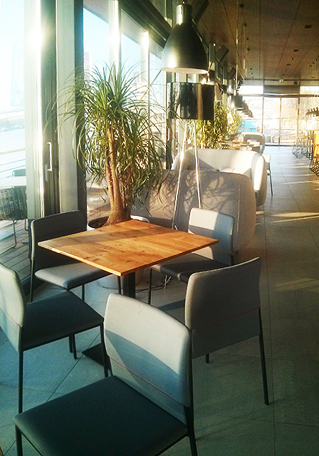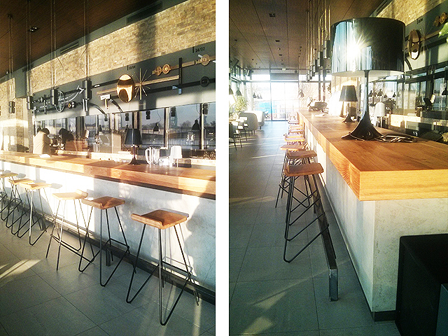Barski sto i stolice u kombinaciji hrasta i čelika.