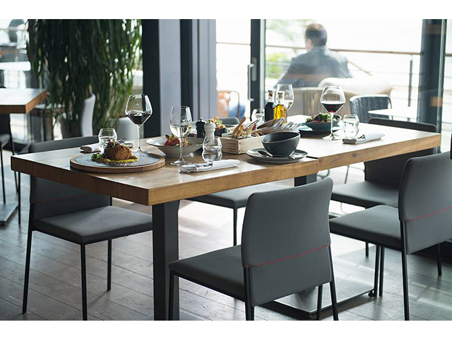 Ploča stola za ručavanje je od masiva hrasta dok je nogar izradjen od čelika.