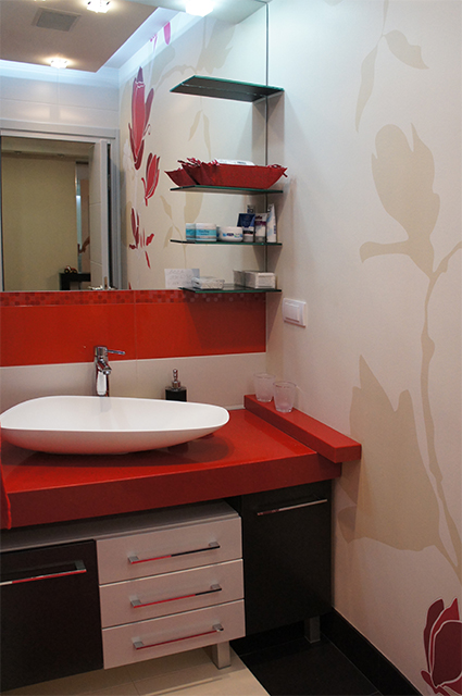Ploča kupatilskog ormarića je od crvenog kamena.