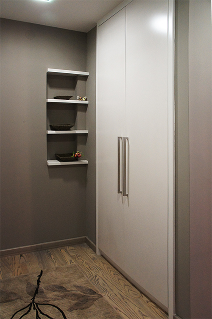 U hodnik su smeštene police i plakar od farbanog medijapana.