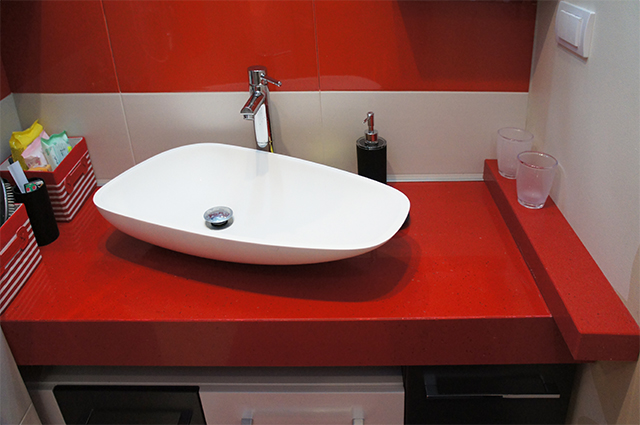 Ploča kupatilskog ormarića je od crvenog kamena.